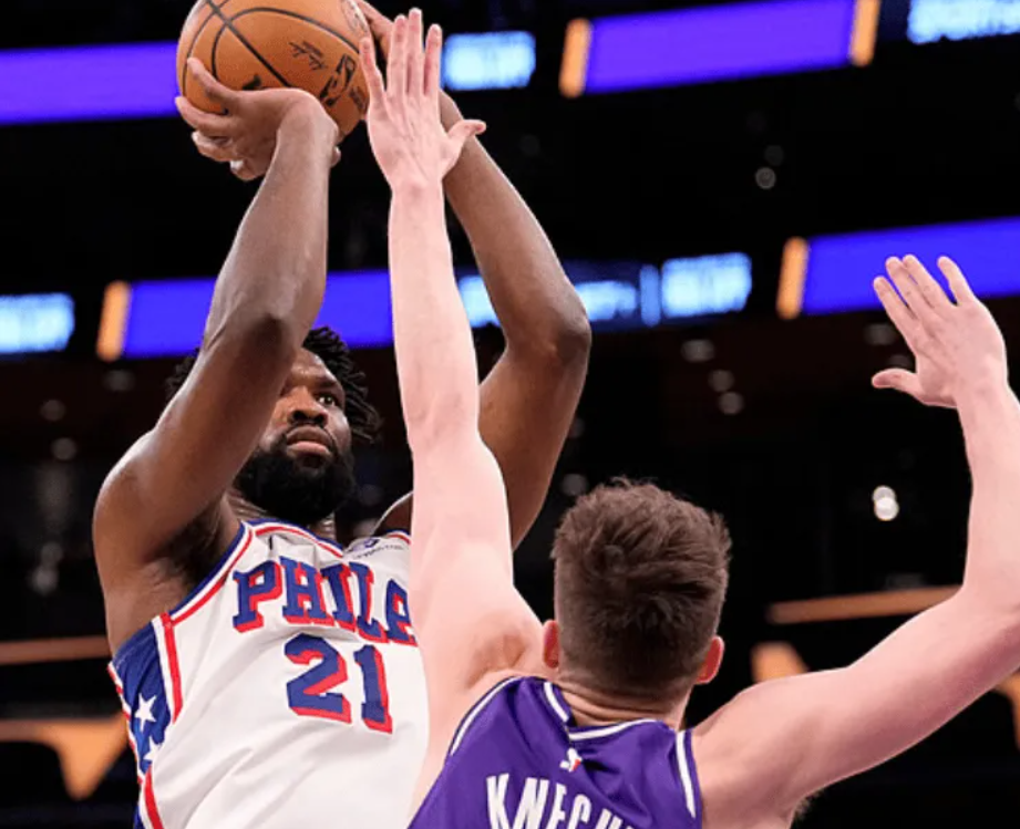 第三节比赛,恩比德单节5中4得到10分,前三节15中11砍下30分7篮板6助攻;里夫斯单节3中3同样砍下8分。